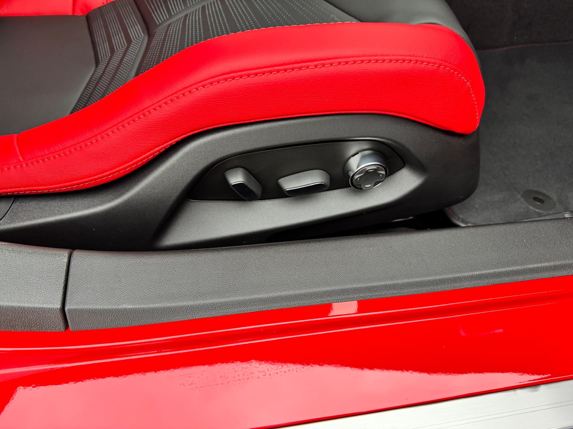 - Adrenaline Red, Napa leather seating surfaces with perforated inserts