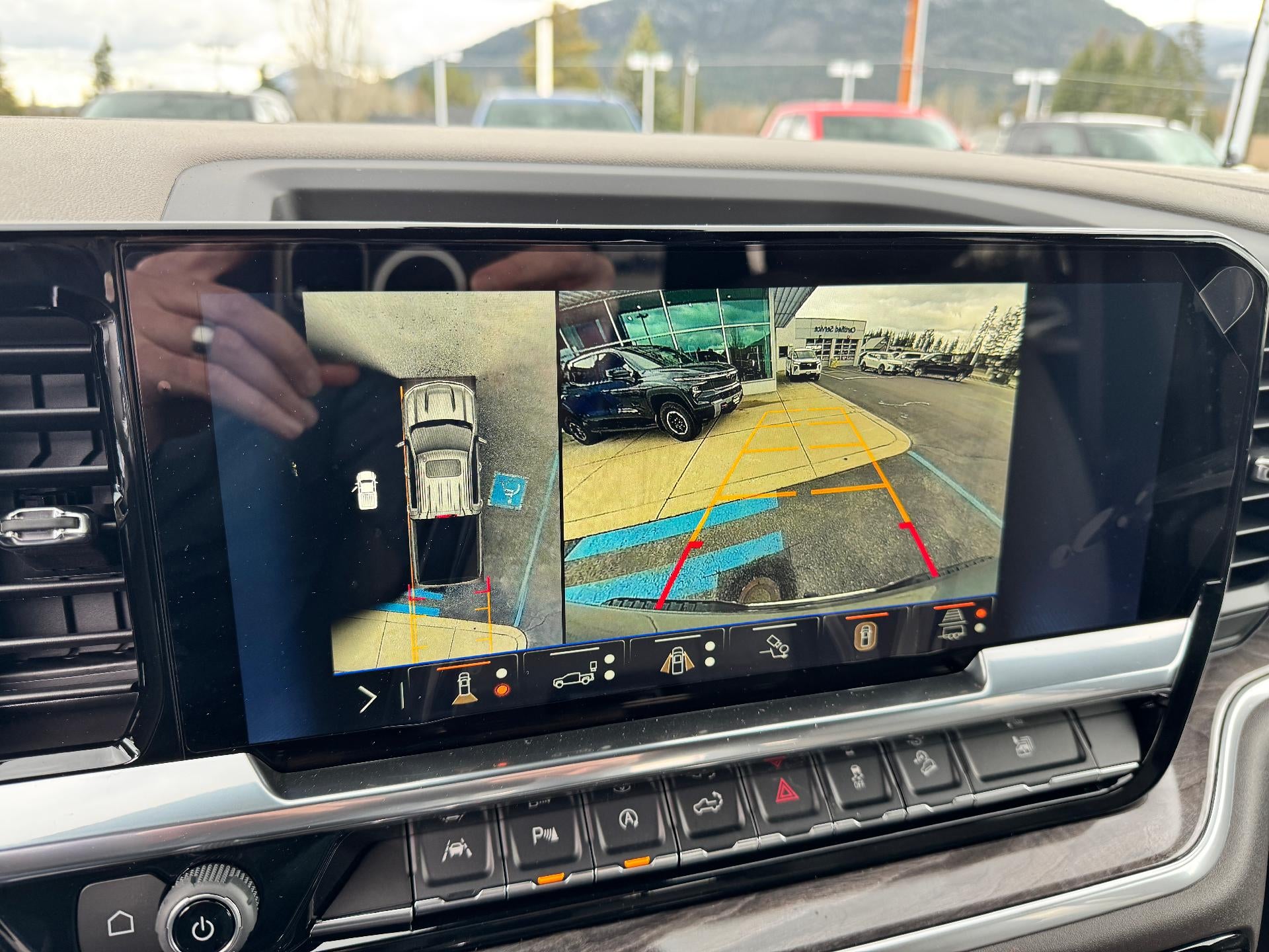 - Allows driver to see inside the cargo bed on the infotainment display to help with 5th wheel or gooseneck hitching and to check cargo